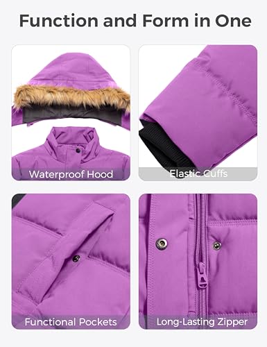 • 100% Recycled Waterproof Fabric- Our winter jackets for women are made with recycled polyester. The shell fabric with a 10000mm waterproof rating effectively keeps out light rain. Stay protected no matter where your adventures take you with our warm puffy coat.
