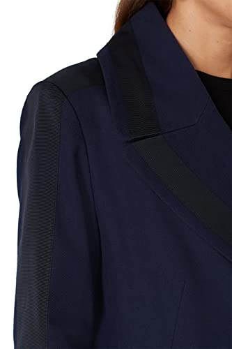• Contrast ribbon trims the sharply tailored silhouette of this army-inspired coat by Victor Alfaro Collective.