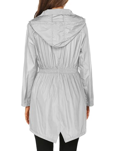 Womens Raincoat Waterproof Long Hooded Rain Jacket Trench Coats Windbreaker Travel Jacket with Pockets 5