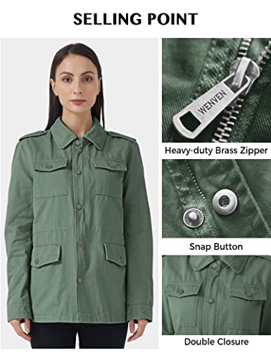 WenVen Women's Lightweight Canvas Cotton Military Jacket Utility Lapel Anorak 4