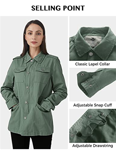 WenVen Women's Lightweight Canvas Cotton Military Jacket Utility Lapel Anorak 6