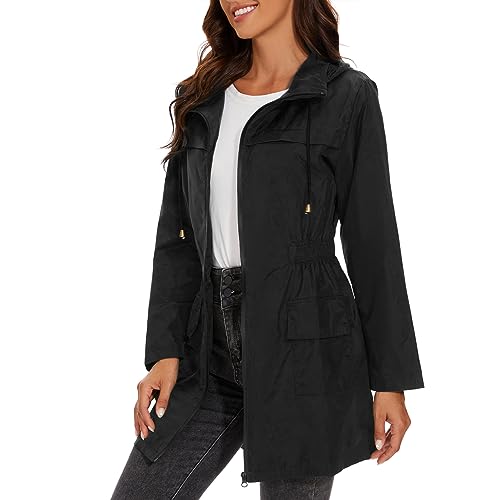 • Material: Women's rain jackets waterproof made of high quality polyester material, waterproof and windproof, lightweight and comfortable to wear