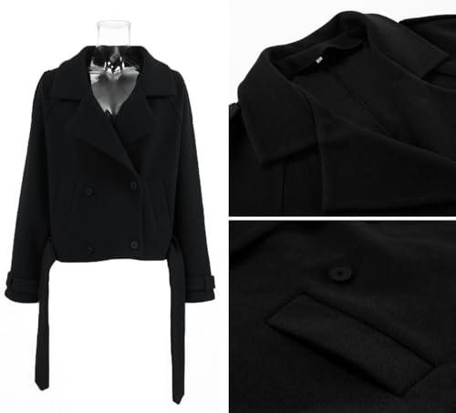 More information about utcoco Womens Cropped Wool Coats Belted Double Breasted Pea Coat Short Jacket Notched Lapel Trench Coat with Pockets