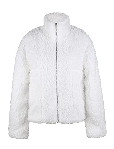 • It’s a hot girl winter. With slightly cropped length(approx 52cm), this snug teddy coat gives you a chic and comfy look in this winter, features silver zip front fastening, oversized fit, you will love to wear this jacket everyday