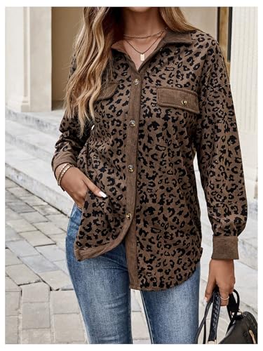 HOT ! SOLY HUX Women's Leopard Print Jacket Button Down Long Sleeve Shacket Fall Jacket Outerwear
