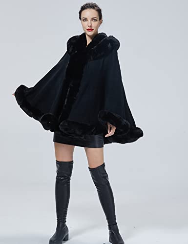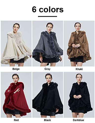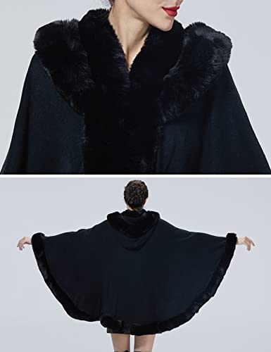 Poncho Hooded Shawl Wrap Women Cape Winter Faux Fur Trim Coat Sleeveless Cardigan Dressy Cloak for Party 5