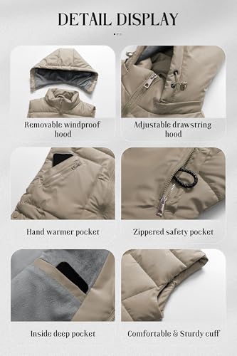 • Practical Details: The long winter vests has a detachable hood, which can switch the style of dressing in different use scenarios.The women's quilted vest has 5 practical pockets.2 hand-warming side pockets to protect your hands in winter, 2 safety zipper pockets to store small items that are easy to lose, and 1 deep internal pocket.The zipper of the women's down vest is durable and reliable.Design carefully and take care of every small detail of your use.