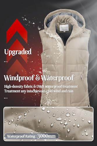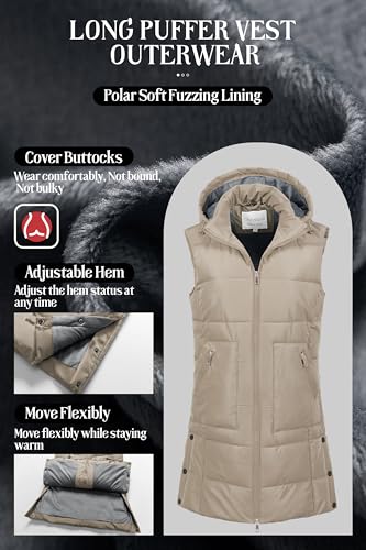 Chrisuno Women's Long Warm Puffer Vest Fleece Sleeveless Vests Waterproof Outerwear With Removable Hood 7