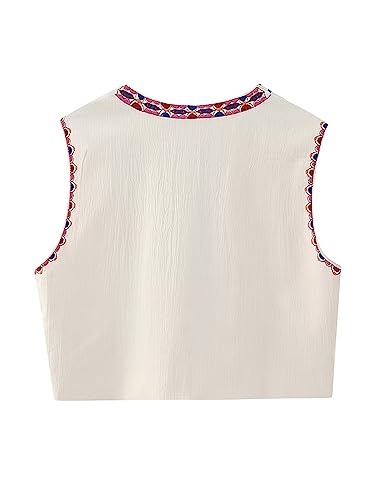 HOT ! NUFIWI Women Vintage Embroidered Floral Vest Top Y2k Sleeveless Open Front Crop Vest Boho Floral Waistcoat Jacket