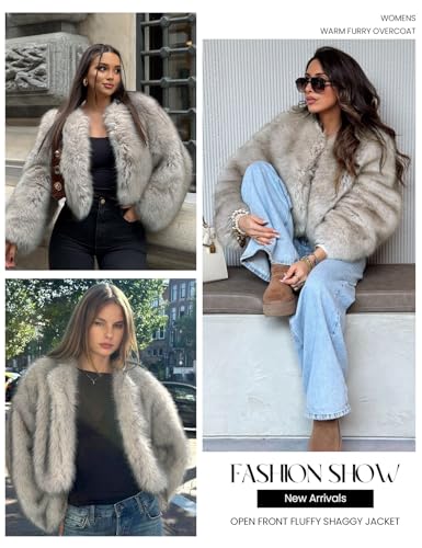 Yimoon Women's Cropped Faux Fur Coat Fluffy Long Sleeve Open Front Shaggy Coat Winter Warm Outwear Jacket 6