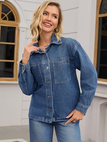 Womens Denim Jacket Casual Long Sleeve Patch Pocket Boyfriend Oversized Jean Jackets 5