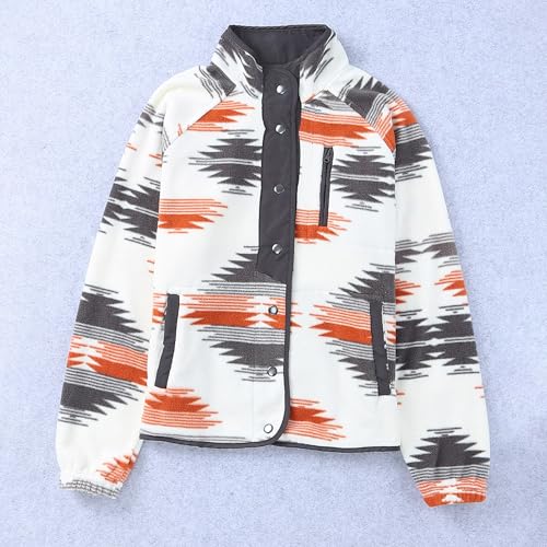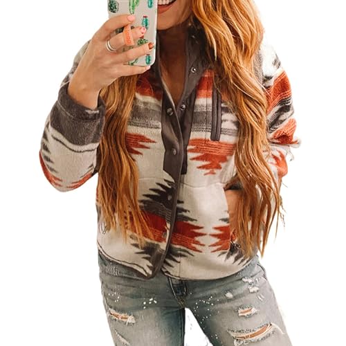 Maixang Women's Western Aztec Print Jacket Casual Fleece Long Sleeve Shacket Snap Button Shirt Jacket with Pockets 6