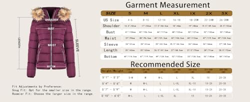 BodiLove Women's Puffer Jacket with Removable Faux Fur Hood and Zipper Burgundy L 1