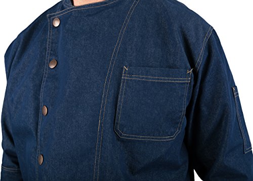More information about KNG Denim Snap Front Chef Coat - Blue, Unisex Adults - 3/4 Sleeve, Trench Coat - XXL