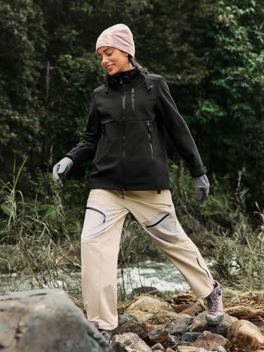 Yousify Womens Softshell Jacket with Hood Fleece Lined Waterproof Warm Hoodie Light Hooded Jacket for Outdoor Hiking 6