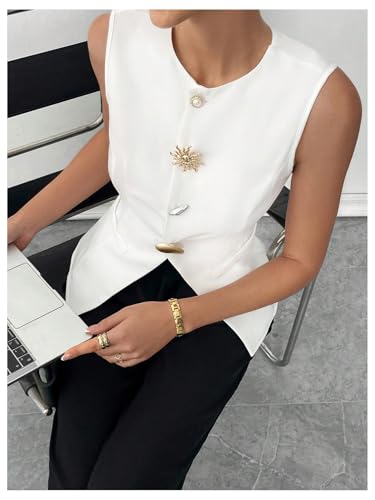 GORGLITTER Women's Metal Pearl Blazer Vest Dressy Sleeveless Fashion Vests Top Business Casual Work Tops 5