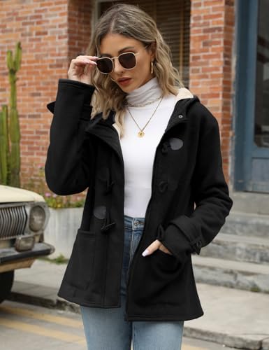 • 【Trendy Design】 Winter coats for women, zipper and button closure, toggle duffle coat, thicken coat with hood, sherpa jackets women winter, horn button, long sleeve, medium weight.
