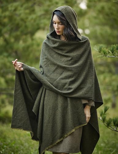 BEAUTELICATE Women Wool Cloak with Hood Open Front Warm Cardigans Blanket Vintage Poncho 5
