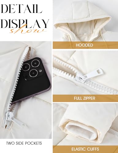 Yimoon Women's Cropped Puffer Jacket Long Sleeve Lightweight Hooded Quilted Jacket Winter Warm Outwear with Pockets 7