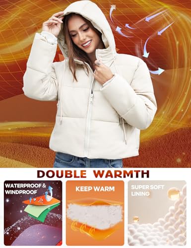 Yimoon Women's Cropped Puffer Jacket Long Sleeve Lightweight Hooded Quilted Jacket Winter Warm Outwear with Pockets 4