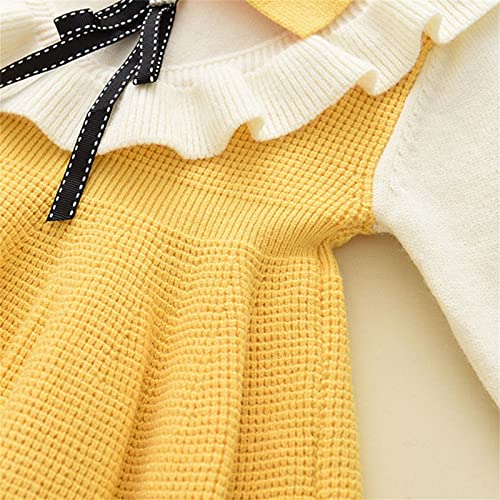 EnJoCho Children Clothes Babys Kids Toddlers Girls Patchwork Bow Tie Spring Winter Long Sleeve Ruffled Knit Sweater Dress 6