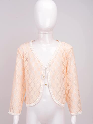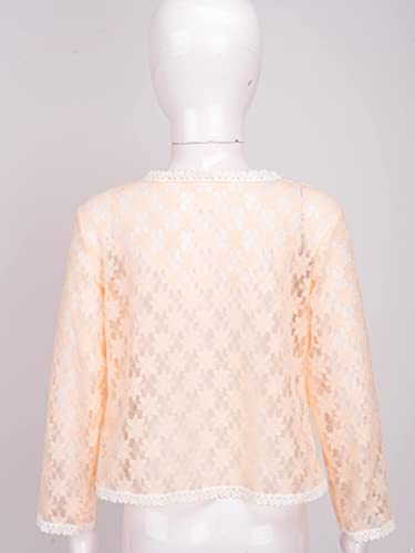 Kids Girls Loghtweight Lace Hollow Shrug CardiganTop Flower Girls Wedding Party Long Sleeve Dress Cover Up 6