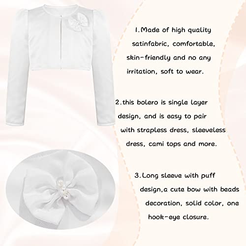 Long Sleeves Satin Shrug for Kids Girl Junior Flower Girl Bolero Short Cardigan Girl Jacket Dress Coat 6