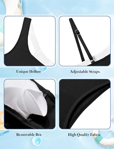 • Unique Design: The color block cut out bikini top features chest pad and adjustable straps that ensure you get the perfect fit. Paired with the high-waisted bottom, this bikini set offers a quick dry flattering and comfortable experience that will make your girls feel like a beach goddess.