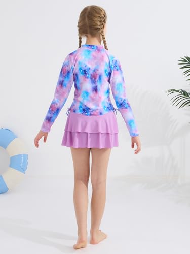 Girls Rash Guard Two Piece Swimsuit Long Sleeve UPF 50+ Bathing Suit Swim Skirt with Shorts Tankini Swimwear 4-10Y 4