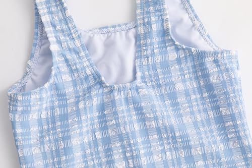 LIZENS Girls Swimwear One Piece Swimsuit Toddler Cute Ruffle Wide Straps Plaid Beach Bathing Suit 7