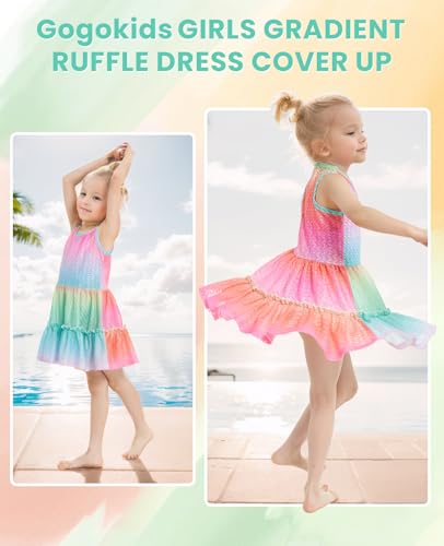 Gogokids Girls Beach Dress Cover Up, Kids Sleeveless Mesh Bikini Coverup with Ruffles Casual Beachwear 5