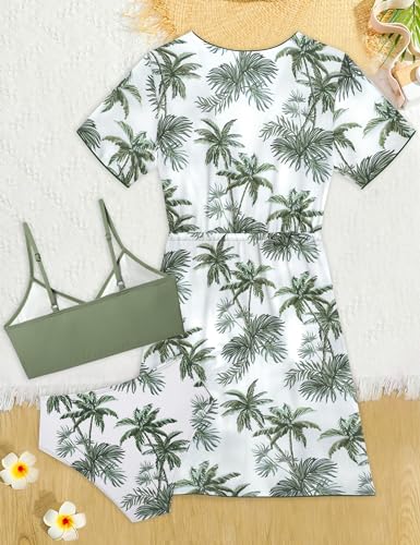 KANGKANG Girls Swimsuit 3 Piece Tropical Print Bikini Set V-Neck Bathing Suit with Drawstring Cover Up Girls' Swimwear 7-16T 4