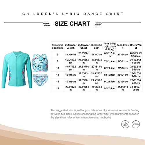 Linjinx Kids Girls 3 Piece Long Sleeve Rash Guard Sets Floral Bikini with UPF 50+ Zip Rushguard Shirt Swimwear Bathing Suit 6