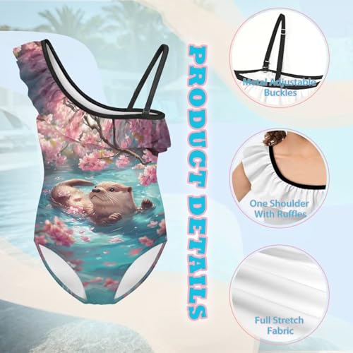 Girls One Piece Swimsuit Size 3-14 Cute Ruffle One Shoulder Swimwear Cozy Summer Beach Bathing Suit 5