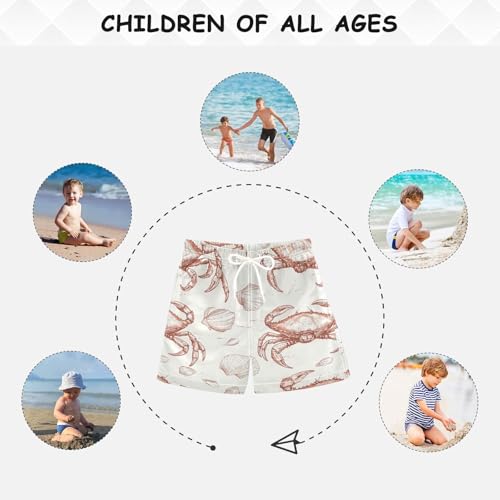 Pigsaly Boys Swim Trunks Hand Drawn Crabs Shells Retro Boys Board Shorts Swimsuit Swimwear Summer Bathing Suit 4T Multicolor 4