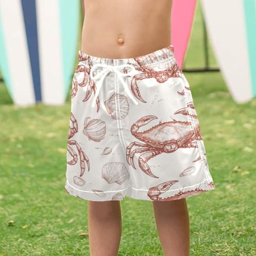 Pigsaly Boys Swim Trunks Hand Drawn Crabs Shells Retro Boys Board Shorts Swimsuit Swimwear Summer Bathing Suit 4T Multicolor 6