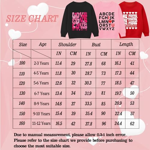 • SIZE OPTIONS: Available for boys and girls aged 2 to 12 years. Please consult the size chart before purchasing to choose the most appropriate size for your child. Let your child wear these sweatshirts on Valentine's Day to express their unique personality