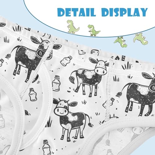 visesunny Boys Cotton Underwear Simple Hand Drawn Cow Printed Toddler Soft Training Briefs Size 2T-8Y for Kids 4