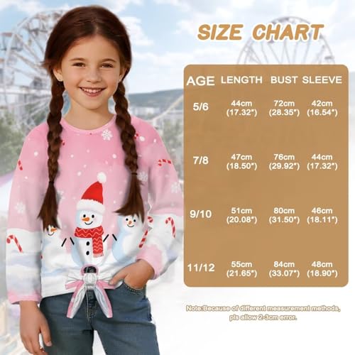Girl's Long Sleeve Shirt Printed T Shirts for Kids Tie Knot Fall Tops Tween Girl Casual Crew Neck Tees Blouse 7