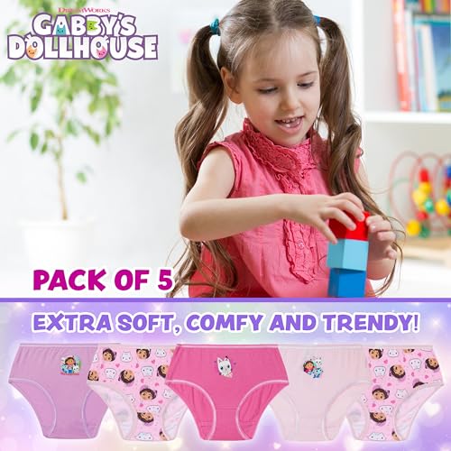 HOT ! Gabby's Dollhouse Girls Knickers, Comfy Breathable 100% Cotton Underwear for Kids - Pack of 5 (Purple/Pink, 3-4 Years)
