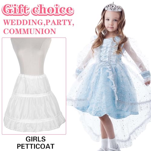 White Girls Petticoat Underskirt, Lace Edge Girl Underskirt with 2 Bones Hoops for Full Slip Puffy Bustle Tutu 3
