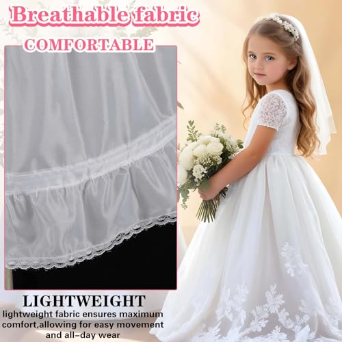 White Girls Petticoat Underskirt, Lace Edge Girl Underskirt with 2 Bones Hoops for Full Slip Puffy Bustle Tutu 7
