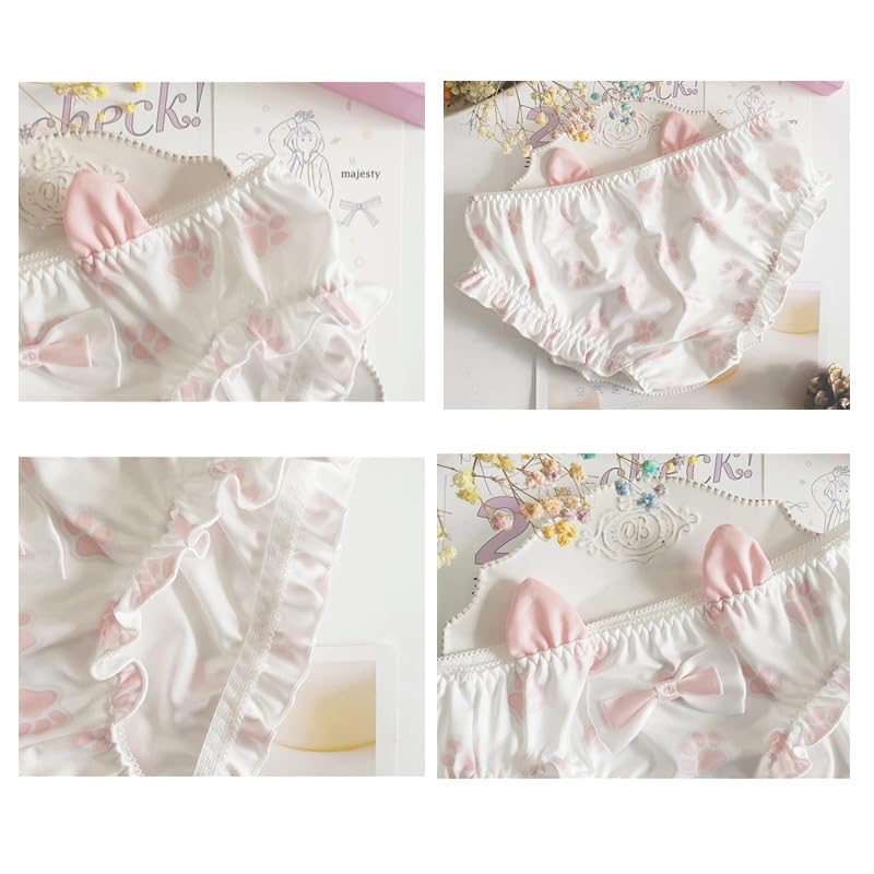 Cute Panties Underwear Anime Bow Japanese Schoolgirl Cat Ears Cat's Paw Wind Kawaii Shorts Ruffles Soft Silk Cartoon(2 packs) 4