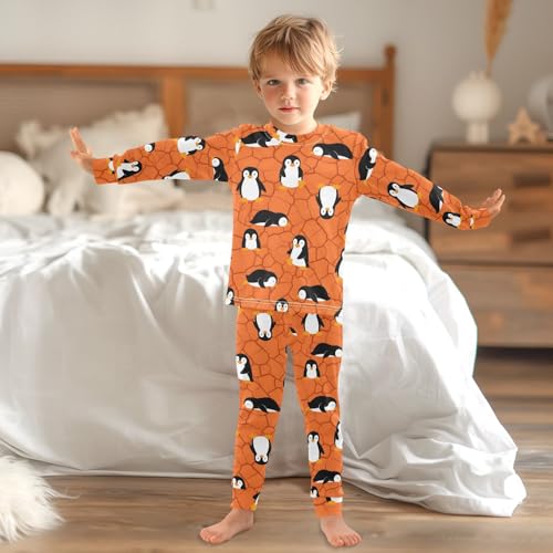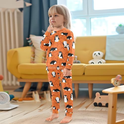 Pajama Sets Long Sleeve Penguin Pattern on Orange Soft Comfy Sleepwear 2 Piece PJS 3-8T 2