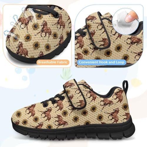 Unisex-Child Boys Girls Shoes Anti-Skid Tennis Sneakers Outdoor Casual Kids Shoes Running Shoes Little Kid Horse Sunflowers Pattern 6