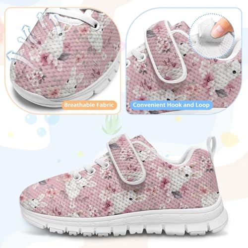 Easter Rabbit Flowers Pattern Little Kid Tennis Shoes Slip On Boys Girls Sneakers Casual Running Shoes Woven Breathable with Soft Soled Sports Hook-Loop Outdoor Shoes(White Sole) 6
