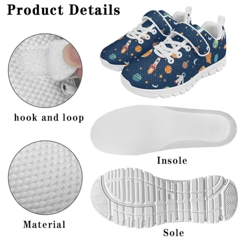 Boys Girls Shoes for Little Kids/Big Kids Machine Washable Lightweight Comfy Athletic Running Shoes Kids Sneakers Light Astronaut Planet Space Pattern(White Sole) 4
