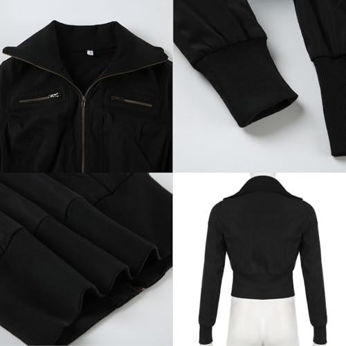 More information about Womens Bomber Jacket Y2k Lapel Long Sleeve Cropped Light Jacket Zip Up Cargo Jacket Fall Coat 90s Streetwear