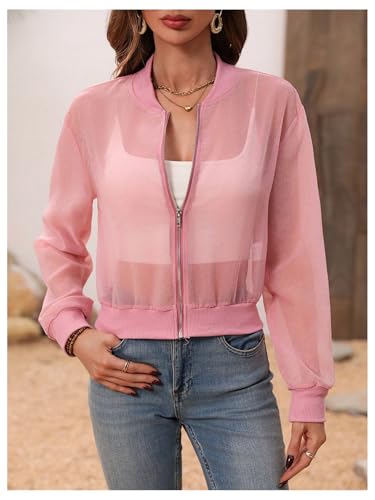 • Features: See through, long sleeve, zip up, lightweight, baseball collar, bomber jackets for women