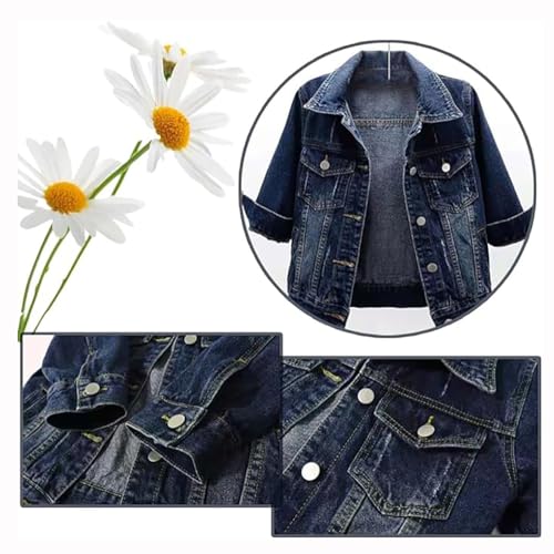 3/4 Sleeve Short Denim Jacket Plus Size,Jeans Jackets for Women 2024, Lapel Button Down Casual Jean Jackets 5